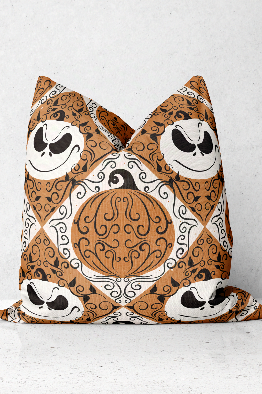 This elegant design with Jack Skellington's face brings the charm of Halloween Town into your home decor. Inspired by The Nightmare Before Christmas, this pillow will match your fall home decor. Let's be honest, there's home decor for spooky season, and then there's home decor for the geeks that love spooky season. These pillows are that second option. And you can mix-and-match because these designs are made to coordinate with each other, using the same color palette.